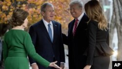 پرزیدنت ترامپ و ملانیا بانوی اول آمریکا روز سه شنبه به دیدار جورج بوش پسر و همسرش لارا بوش، که برای برگزاری مراسم یادبود جورج هربرت واکر بوش در واشنگتن هستند، رفتند. رئیس جمهوری آمریکا و همسرش با جورج بوش و همسرش در بلر هاوس، اقامتگاه رسمی مهمانان رئیس جمهوری دیدار کردند.