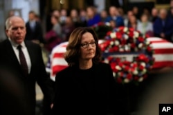 روز سه شنبه بسیاری از مقام های فعلی و پیشین دولت آمریکا به پیکر جورج هربرت واکر بوش ادای احترام کردند؛ در این تصویر جینا هاسپل، رئیس سیا به همراه جان برنان، رئیس سابق سیا، پس از ادای احترام به رئیس جمهوری سابق آمریکا، کنگره را ترک می کنند.
