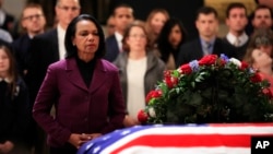 کاندولیزا رایس، وزیر خارجه سابق آمریکا، از جمله شخصیت هایی بود که روز سه شنبه به پیکر جورج هربرت واکر بوش ادای احترام کرد.