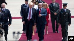 نخستین سفر خارجی رییس جمهوری آمریکا به عربستان سعودی و اسراییل، دو دشمن بزرگ ایران در خاورمیانه، بود. هدف دوگانه از این سفرها متحد کردن این دو کشور علیه جمهوری اسلامی و زمینه سازی برای حمایت از توافق عالی صلح میان اعراب و اسراییل بود. اگر اسراییل از کرانه باختری و شرق اورشلیم خارج نشود توافق صلح میان اسراییل و فلسطینیان بسیار سخت یا شاید غیرممکن باشد.