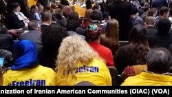 اما در میان حاضران در این نشست، یک گروه از آمریکایی-ایرانی ها در جلسه بررسی اعتبارنامه رکس تیلرسون حضور داشتند که پشت پیراهن شان هشتگ #FreeIran درج شده بود.