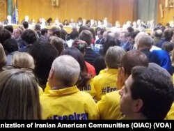 روز چهارشنبه بحث ایران تنها موضوع سوال و جواب سناتورهای سنای آمریکا و گزینه پیشنهادی برای وزارت خارجه آمریکا نبود، بلکه گروهی نیز در میان مستمعین این جلسه، با تیشرت هایی با درج ایران حضور داشتند.
