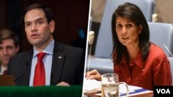 همزمان با پیشنهاد سناتور مارکو روبیو که می گوید آمریکا باید کشورهای حامی بشار اسد را تحریم کند، نیکی هیلی نماینده آمریکا در سازمان ملل نیز می گوید بحث درباره اعمال تحریم های سنگین تر ایران از سوی آمریکا در دولت ترامپ همچنان در جریان است.