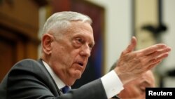 متیس که در یک جلسه رسیدگی در کمیته نیروهای مسلح مجلس نمایندگان آمریکا گزارش می داد درباره روند استراتژی نظامی آمریکا صحبتی نکرد، ولی از اهمیت شکست داعش و حفاظت از غیرنظامیان در سوریه سخن گفت: «دولت قبلی و این دولت هر دو بسیار روشن کرده اند که نقش ما در سوریه شکست داعش است. ما در جنگ داخلی سوریه درگیر نخواهیم شد. ممکن است به یک سال پیش وقتی که ما موشک هایی به سوریه شلیک کردیم رجوع کنید که ربطی به داعش نداشت و البته به استفاده از جنگ افزار شیمیایی مربوط بود؛ و بعضی چیزها صرفا غیرقابل بخشش و غیرقابل قبول هستند و نه تنها بدترین ضربه به کنوانسیون منع استفاده از جنگ افزار شیمایی که به منافع تمدن بشری است.»