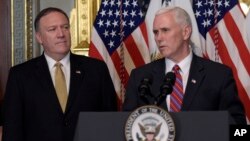 مایک پنس معاون رئیس جمهوری آمریکا بارها درباره نقش ایران در خاورمیانه هشدار داده است. او در سومین سالگرد اجرای توافق اتمی موسوم به برجام با ایران، بر بد بودن این توافق، عزم پرزیدنت ترامپ برای تشدید فشارها بر جمهوری اسلامی و این که توافق فقط در «خدمت ملاها» و «نه مردم ایران» بود، تاکید کرد.