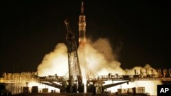 همزمان با پرتاب ماهواره پیشرفته هواشناسی آمریکا، فضاپیمای روسی سایوز نیز سه فضانورد را به ایستگاه فضایی رساند.