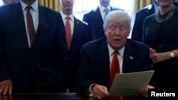 به گزارش روزنامه واشنگتن پست، دونالد ترامپ که این فرمان را در حضور رؤسا و مدیران اجرایی چند شرکت بزرگ آمریکایی در دفتر کار خود در کاخ سفید امضا کرد، گفت هر گروه «توصیههایی» را برای لغو، یا اصلاح و سادهتر کردن مقررات جاری ارائه خواهد داد.