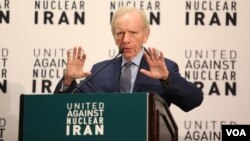 جوزف لیبرمن رئیس نهاد «اتحاد علیه ایران اتمی می گوید: عمیقا اعتقاد دارم رژیم ایران تهدیدی برای صلح جهانی است. توافق هسته ای نه تنها تهدیدات را کم نکرده بلکه خطرات رژیم در حال کنونی بیشتر شده است. ماموریت ما به عنوان یک نهاد غیردولتی جلوگیری از هسته ای شدن ایران است.