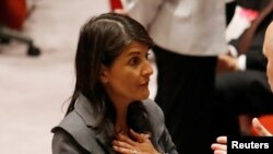 نیکی هیلی، سفیر آمریکا در سازمان ملل متحد در جلسه شورای امنیت گفت: « قطعنامه پیشنهادی کویت، به صورتی ناهنجار و فاحش، تصویری یکطرفه و جانبدارانه ای را از آنچه در هفته های اخیر در غزه اتفاق افتاده، ارائه می دهد. و هر کس که نگران برقراری صلح در خاورمیانه است، باید علیه آن رای دهد. گروه تروریستی حماس، مسئول شرایط نکبت بار زندگی در غزه است.»
