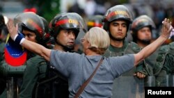 سربازان گارد ملی در خودروهای زرهی تظاهر کنندگانی را که خواهان آزادی لوپز بودند زیر نظر داشتند.