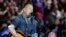 تیلور در مراسم بیلبورد یک پیراهن صورتی کمرنگ ورساچی پوشیده بود که یک برش تا بالای ران داشت و با ذرات نقره و پر تزئین شده بود.